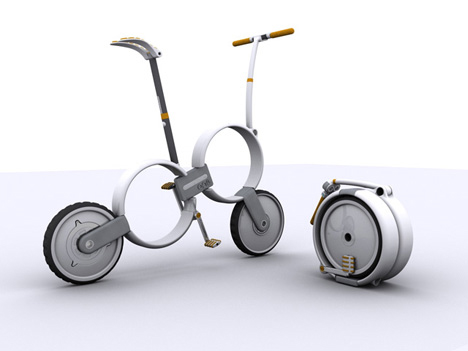 Sepeda lipat ini berpenampilan futuristis dan bisa dilipat menjadi bentuk yang sangat kompak dan kecil. Tujuannya adalah membuat sepeda super-portable untuk mempermudah transport dalam kota. Bingung juga gimana ngelipetnya jadi seperti itu ?